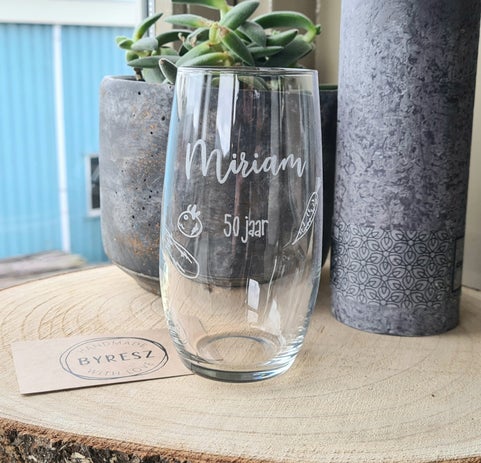 Bestellen? Stuur een mail naar info@byresz.nl of een bericht via het contactformulier en geef daarin door wat er op het glas gegraveerd mag worden.
